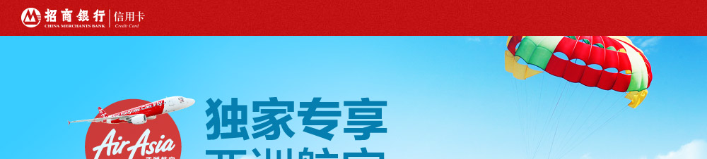 通过专属活动页面预订并使用招商银行VISA信用卡或万事达信用卡支付,享AirAsia机票折上8折!