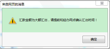【注】若汇款金额大于我行头寸预报标准,将弹出以下提示框,企业需提前和网点确认汇出时间: