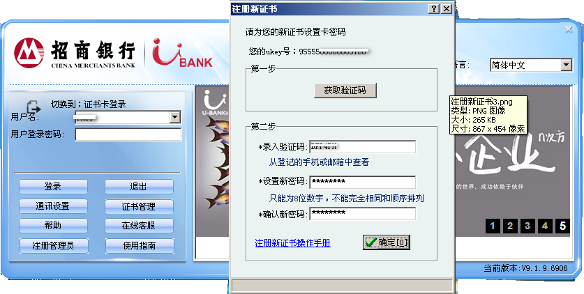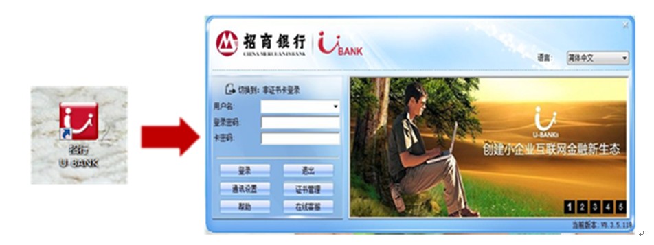 1. 该业务需要10.3.9.656及以上的U-BANK客户端,如您是网上“企业银行”新用户,或者使用的版本低于该版本,请下载安装新客户端;