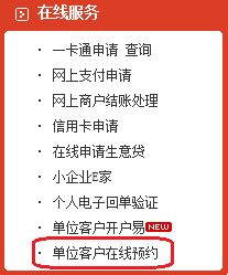 1、登陆招商银行“一网通”首页(网址www.cmbchina.com)—在线服务—单位客户在线预约。
