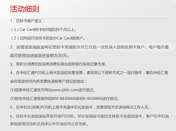 * 部分加油点存在业务调整,请客户参与活动前注意确认该站点可支持信用卡交易