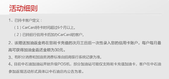 * 部分加油点存在业务调整,请客户参与活动前注意确认该站点可支持信用卡交易