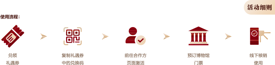 7支持自预订日起30个自然日内的门票预订,请您至少提前5天进行预约,支持预订同一天的两家不同博物馆门票,具体预约安排以预约商户的实际情况为准,参与兑换的境外精选博物馆名录和服务内容以预约渠道最新公布为准。