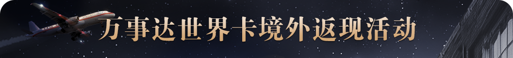2025年7月1日-2025年12月31日(北京时间)期间,招商银行万事达世界信用卡主卡持卡人自成功报名当日起,使用万事达世界卡境外线下消费享笔笔1%返现,每户每月最高享1000元人民币返现奖励。活动奖励有限,先到先得。
