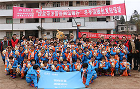 2015年12月,招商财富与壹基金工作人员亲赴贵州省赫章县实地发放温暖包。