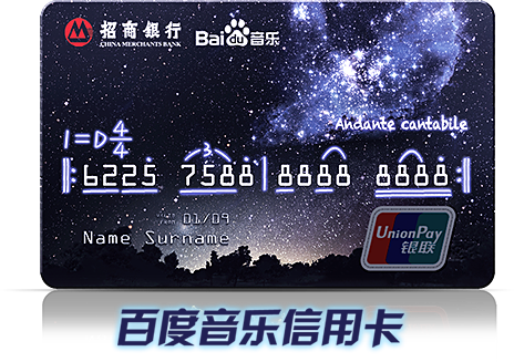 本活动仅适用于申请并成功核发招商银行百度音乐联名卡的新户主卡客户,且申请时间为2014年12月22日至2015年3月31日(含)前,申请时间以信用卡中心系统记录的申请资料键档时间为准。新户定义:首次申请招商银行个人信用卡(含整户注销6个月【含】以上)并成功核发的客户。 |