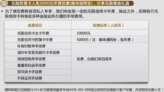 无限附属卡人免5000元年费优惠,分享无限尊崇礼遇