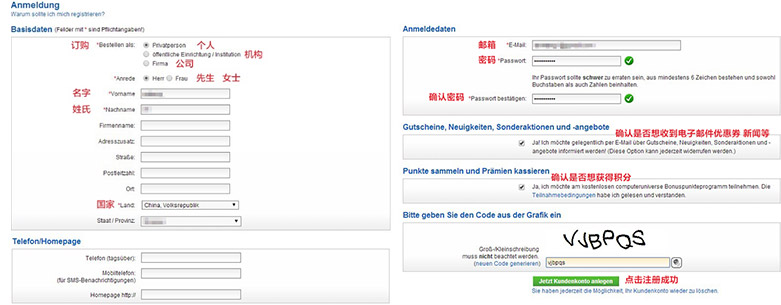 首先先来注册,首页右键Mein Konto新建页面可弹出登陆框,点击底下Neues Kundenkonto anlegen注册或者直接点这里: