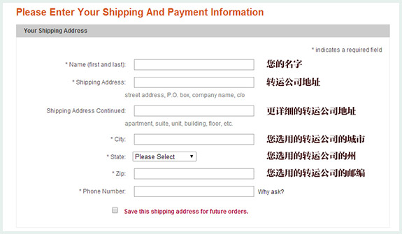 添加到购物车,果断付账吧。点击继续后,会出现一长串的核实内容。亲,表急。心急可是吃不了热豆腐哦。由于6PM并不支持海外直达。所以亲还需要挑选一下合适的转运公司。比如天翼,润东什么的。。根据转运公司的信息,填写完表格。