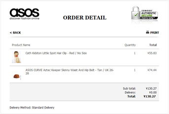 买过的订单也能够在"My Account"中查询到,这是我第一单试地址淘的2个小东西,价格太白菜啦。同样款式的东西在某店代购那里贵30多元还不包邮,正好遇到了ASOS打折,非常划算!而且还全球包邮,你说为什么不自己海淘呢,还找神马代购挖~