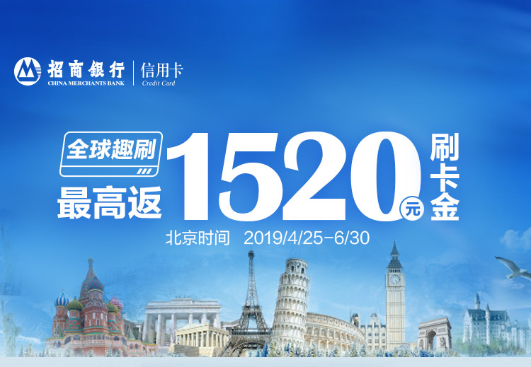 *持卡人成功领取刷卡金礼包,活动期间在境外(含港澳台)线下商户使用招商银行个人信用卡刷卡达标,即可享对应刷卡金奖励,最高享1520元刷卡金。