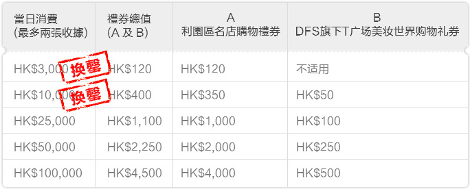 DFS旗下T广场美妆世界购物礼券只适用于希慎广场分店。