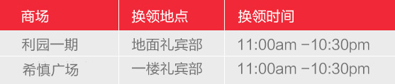 9购物礼券换领时间地点为:
