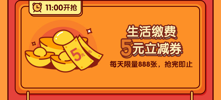 本次活动发放的生活缴费5元立减优惠券、全家10元抵扣券和屈臣氏10元抵扣券的有效期均为2018年9月27日至2018年10月7日。生活缴费5元立减优惠券详情以优惠券细则为准,全家和屈臣氏10元抵扣券的具体使用细则或适用门店以商品详情页面展示为准哦。