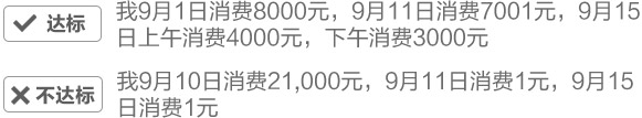 3天礼:活动期间,任意3天使用招行个人信用卡消费,且每天累计消费满7000元,即可获得礼品兑换资格,如: