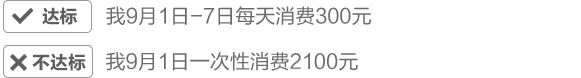 7天礼:活动期间,任意7天使用招行个人信用卡消费,且每天累计消费满300元,即可获得1次刮奖机会,如: