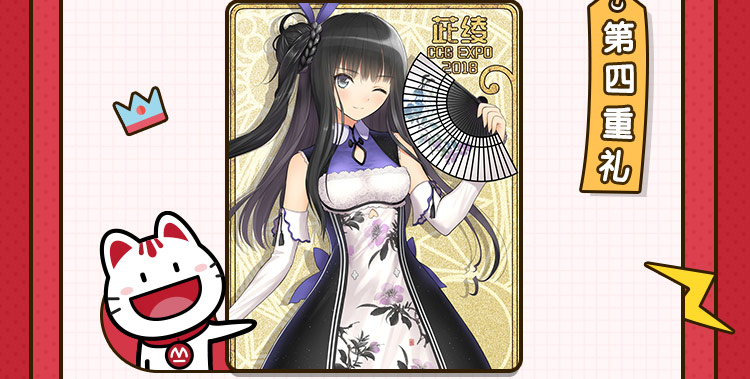 现场观众集齐17张散落在各展台的“国士无双”闪卡,即可至中厅小招喵兑换处兑换“CCG娘-茈绫闪卡”一张,每天限量兑换400张;每天前30位成功兑换者,还可额外获赠小招喵周边礼品一份。