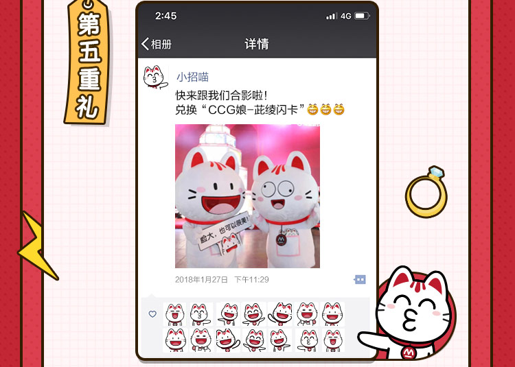 现场观众前往中厅小招喵展台,使用掌上生活App扫描指定二维码签到,即可获得小招喵周边礼品一份(数量有限,发完即止)。