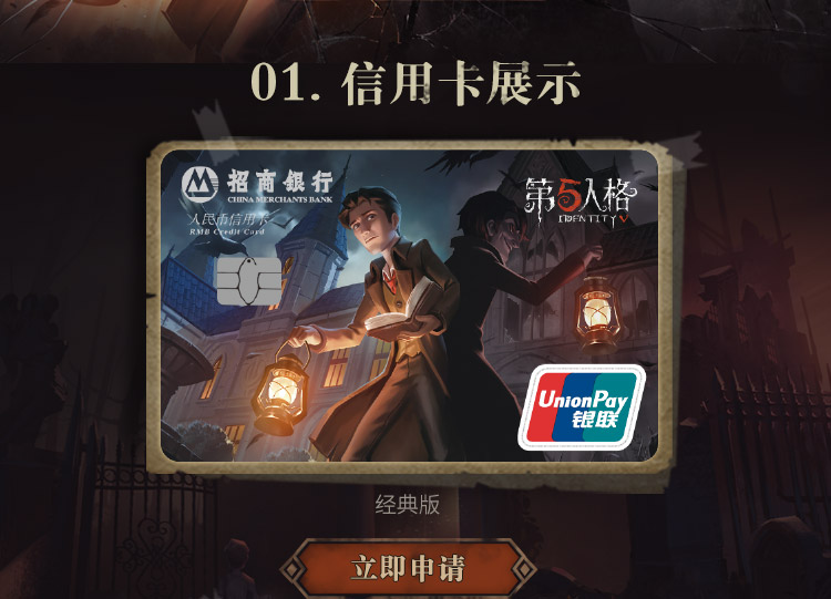 申请招商银行第五人格联名信用卡经典个人版和校园版免收制卡工本费,申请招商银行第五人格联名信用卡典藏个人版,卡片核发后无论是否开卡,将收取100元制卡工本费。