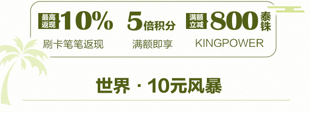 2017年9月1日-11月30日期间,持卡人报名成功当日起于泰国、马来西亚线下刷招商银行个人信用卡(银联线路),累计满3000元人民币,即可享受5倍永久积分奖励(1倍原始积分+4倍奖励积分),活动期间每户最高可获5000奖励积分。