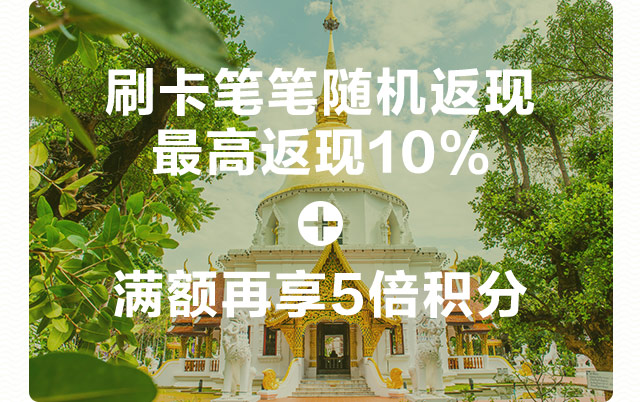 2017年9月1日-11月30日期间,持卡人报名成功当日起在泰国、马来西亚线下刷招商银行个人信用卡(银联线路)即可享受笔笔随机返现,不限次数,每笔最高返10%,活动期间每户最高可返1000元人民币。