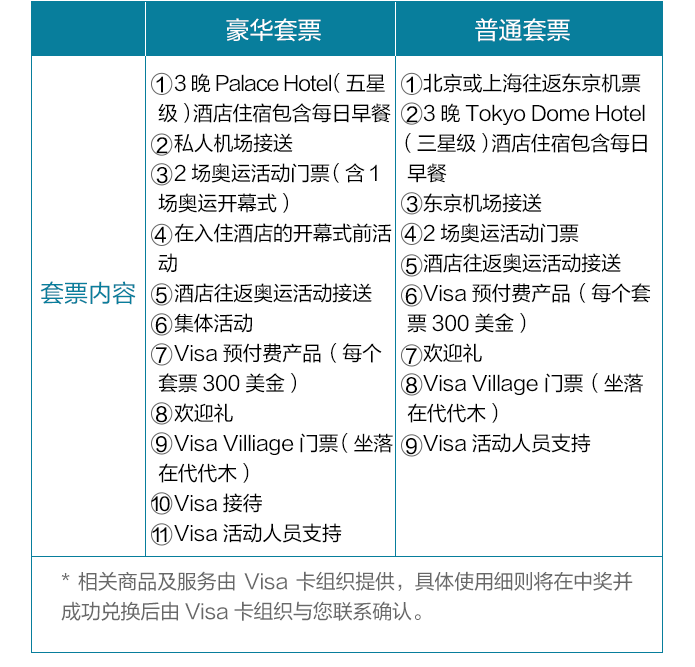 *相关商品及服务由Visa卡组织提供,具体使用细则将在中奖并成功兑换后由Visa卡组织与您联系确认。