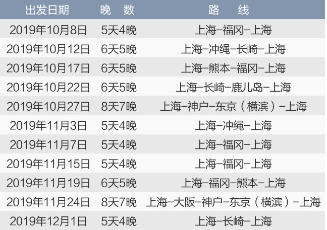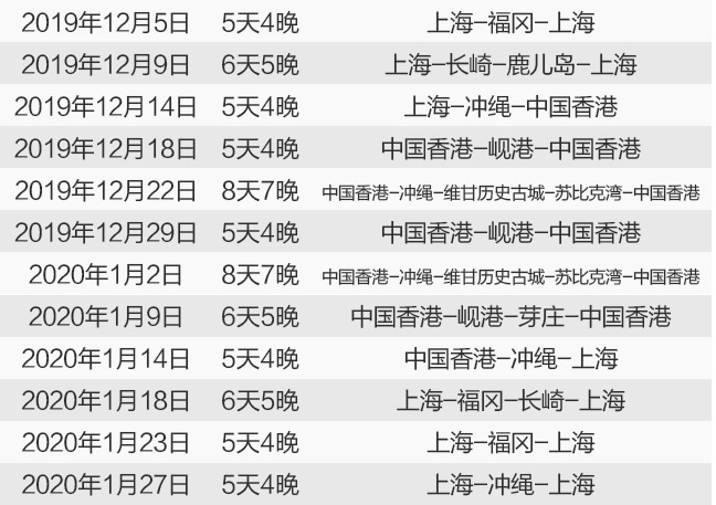 2019年10月8日至2020年1月31日期间出发的航次