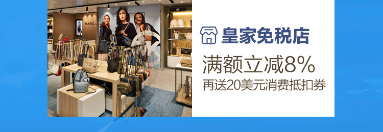 1.皇家免税店:单笔消费满400美元,享8%折扣优 惠(最高优惠50美元),并可获赠20美元消费抵扣 券1张(下一笔消费满400美元即可使用);