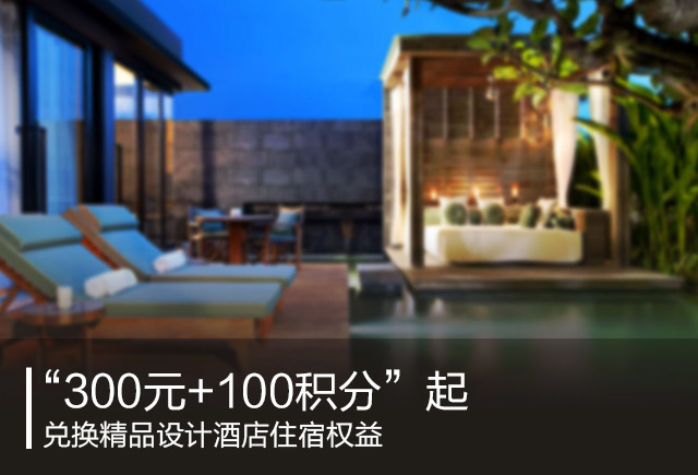 2015年4月1日至2016年3月31日,您可享:“300元+100积分”起兑换境内外五十余家精品设计酒店入住体验。