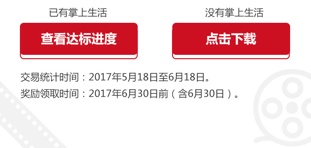 资格进度可在消费完成后4个工作日进行查询。资格查询及奖励领取路径:“掌上生活—我的—活动.奖励—热门活动”。达标后需要您自行在掌上生活领取奖励。领取成功后,请于60分钟内完成0元0积分支付。支付成功后,可在“精选页—影票”点击右上角图标进入“我的影票—我的优惠券”或“我的-订单票券-电影票-我的优惠券”栏目下查询观影券。奖励领取截止日期:2017年6月30日(含),逾期未领取的客户视作自动放弃奖励,不再补发。