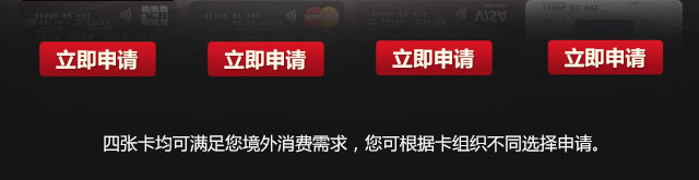 您可畅享国际卡组织JCB、VISA、MasterCard提供的优质刷卡服务,在海外200多个国家和地区拥有千万家特约商户。