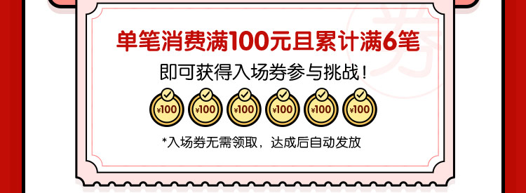不要着急,只要后续您在活动期间完成6笔100元以上的消费,无需重复完成挑战任务,就可以领取相应的积分奖励哦。