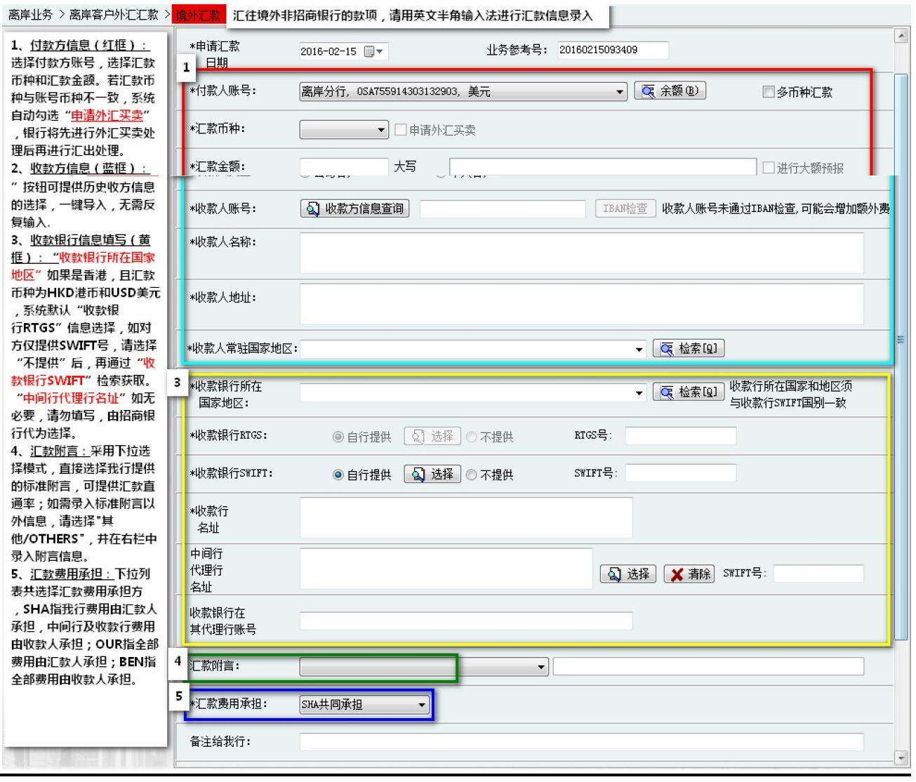 号,可提高汇款直通率。“自行提供”-“选择”可输入银行名称或RTGS 号检索,选中记录后系统将自动将银