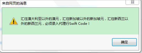 若上述三种场景下未填写收款行代理行信息,界面则弹出提示对话框。
