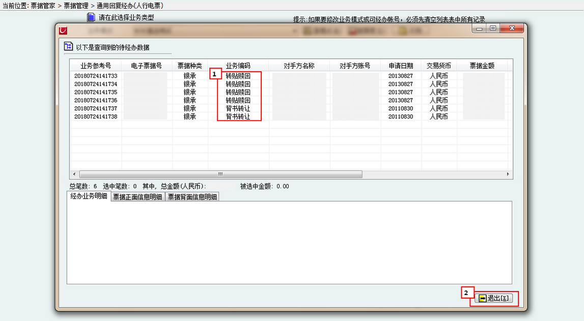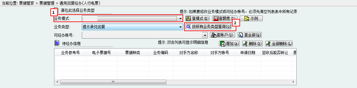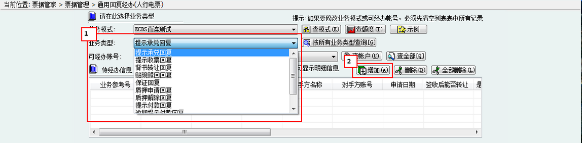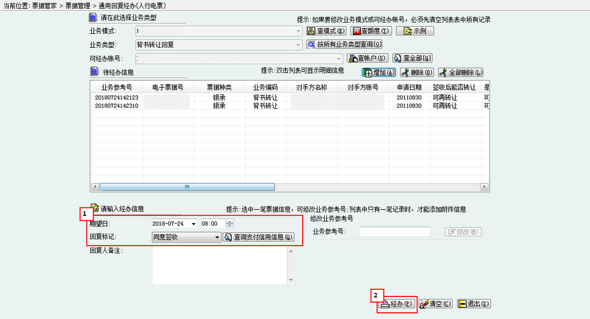 1.点击“票据大管家-票据管理-业务操作-通用回复经办(人行电票)”