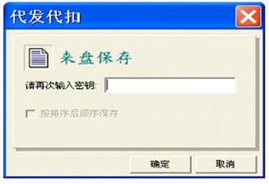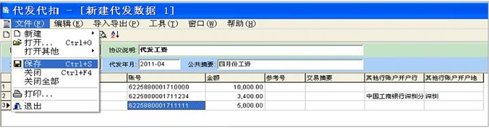 7、代发数据导入至SA系统之后,如下图所示,再点击“文件—保存”,系统会弹出需要再次输入密钥的提示,客户需将之前维护的密钥再次输入。点击确定之后,系统会弹出让客户选择保存路径的提示,保存好即可,文件类型:agf。(注意:密钥输入的正确与否此处不提示,只有到柜台之后才验证,密钥错误将无法发放工资。)