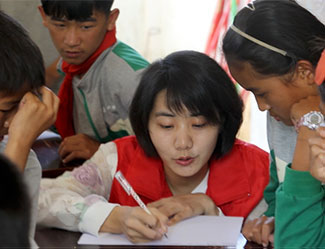 张译丹,来自湖北宜昌,刚毕业一年的她却已有丰富支教经验。她为大山带来丰富的国学知识和书法,课上用形象生动的故事述说文字的来源、涵义。她还俏皮地告诉同学们:“字写得好看,考试会加分哦。”