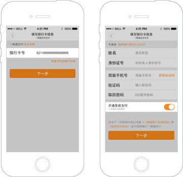 按照提示绑定银行卡信息。绑卡同时您可选择更便捷的免密支付(每天支付总额小于500元)。