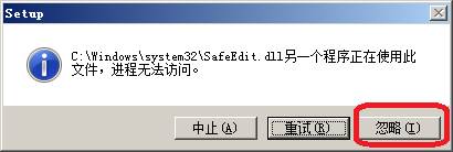 在安装过程中如果出现如下对话框,请选择“忽略”。