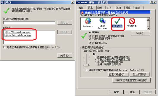 步骤一:把招行网址加为安全站点