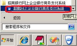 步骤二:卸载旧版本程序。在“开始”à“程序”à“招商银行网上企业银行商务支付系统”à“卸载网上企业银行商务支付系统”。