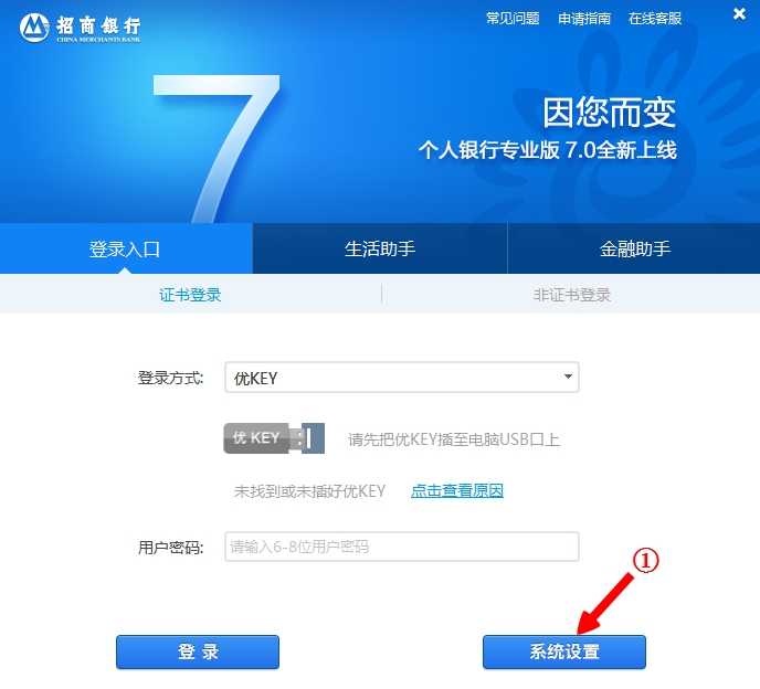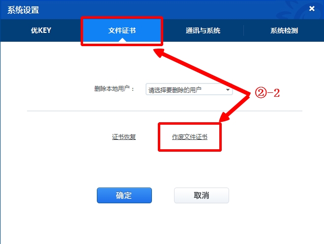 二:根据您使用的证书类型是“移动证书”还是“文件证书”选择对应的“优KEY”或“文件证书”标签